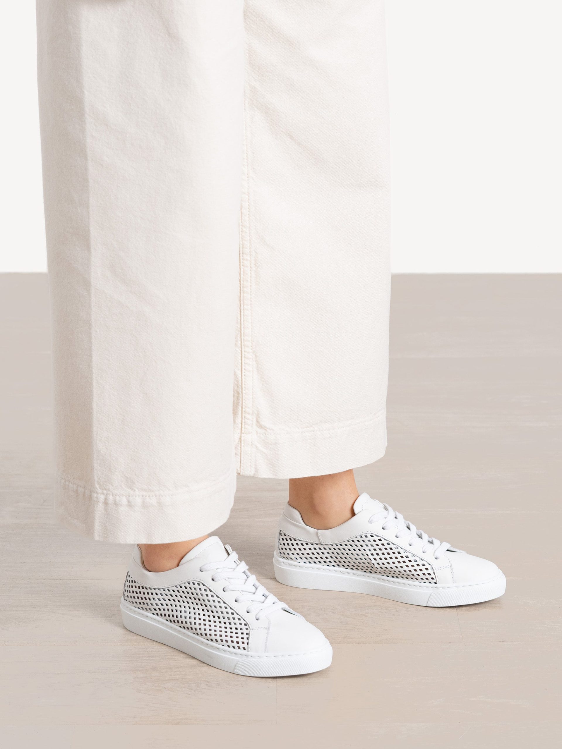 Our signature sneaker, updated for the warmer months with breathable, lattice-cut leather panels. It’s everything you love about the original—ultra-soft and flexible leather, lightweight rubber sole, cloud-like footbed—in this season’s must-have material. Wear it with everything from wide-leg denim to easy linen dresse